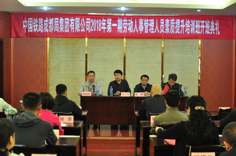 4月17日上午,中国铁路成都局集团有限公司2018年第一期劳动人事管理人员素质提升培训班开班典礼于华东交大专家楼顺利举行。出席本次开班典礼的领导有PA视讯经理韩士专,成都局人事处人才交流培训站站长胡勇,PA视讯副经理陶裕春,经理助理、培训班班主任朱钢英,会议由陶裕春主持。