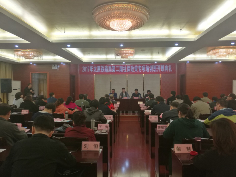 3月28日早,太原铁路局第二期社保政策专项培训班在专家楼举行开班典礼。PA视讯副经理陶裕春,常务副经理韩士专,太原铁路局处长宁建文,PA视讯经理助理兼带班班主任朱钢英以及社保政策专项培训班全体学员参加开班典礼。