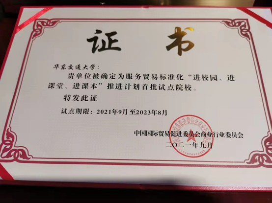 近日,中国贸促会商业行业委员会发布《关于公示首批服务贸易标准化“进校园、进课堂、进课本”推进计划试点院校名单的通知》,确认在全国高校范围内遴选了深圳大学、黑龙江大学等28所服务贸易标准化“进校园、进课堂、进课本”推进计划试点院校。公司成功入选为首批服务贸易标准化“进校园、进课堂、进课本”推进计划试点院校,为江西省唯一一所获评院校,也是继公司成为首批国际经贸规则与标准研究基地后又一个新的成果。