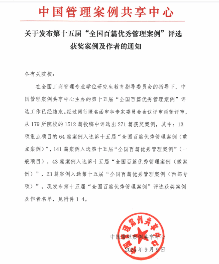 “百优案例”评选是我国管理案例评选的最高奖项,参与院校数量、师生人数、投稿数量、覆盖企业数量均为全国同类评选活动之最。“全国百篇优秀管理案例”的评审流程、标准均与国际接轨,获奖的案例代表着国内管理案例的最高水平。