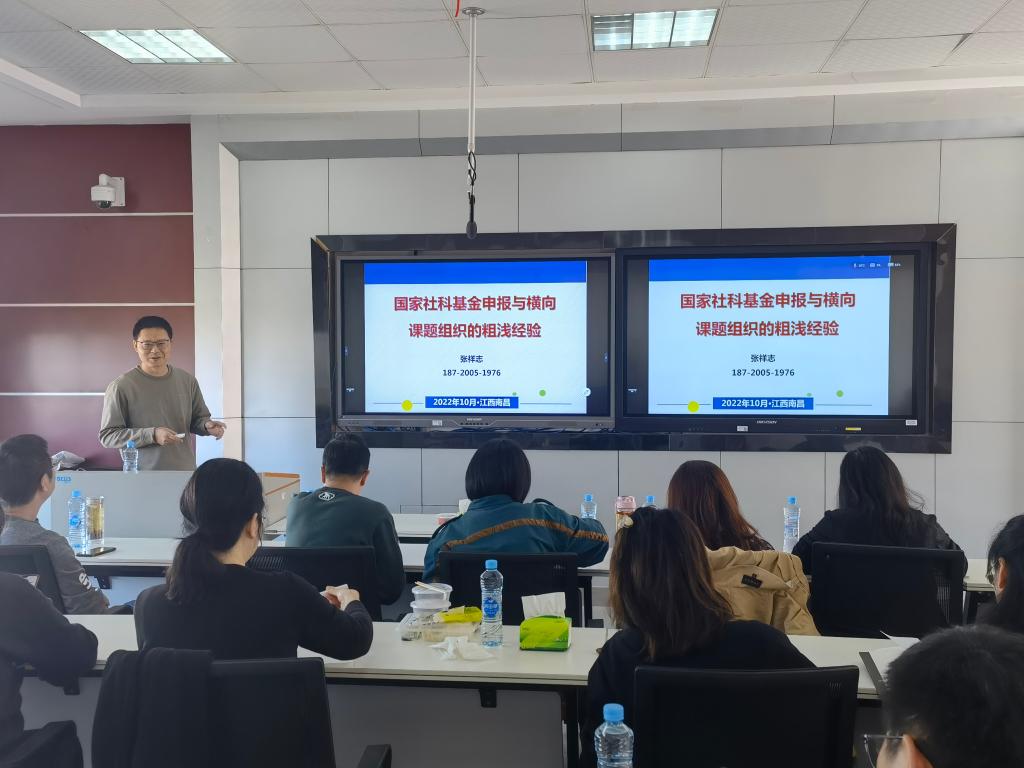 在国家社科基金的申报方面,张祥志副经理以自身成功的立项经验,从准、整、细、新四个方面精炼概括了国家社科基金申报书撰写的要点。张经理表示,在选题过程中要瞄准国家战略、社会热点及自身研究方向,并与国家发展战略趋势相吻合;在撰写过程中需耐心仔细,注意任务要求的关键点和保持逻辑清晰。对于申报书撰写内容是否要进行创新的问题,他认为创新有风险,但富贵险中求,所以需要新的“到位”,才能吸引评委。在横向课题的撰写中,张教授指出,要认真一点、多付出一点,用认真的态度和专业实力去获得合作单位的信任。