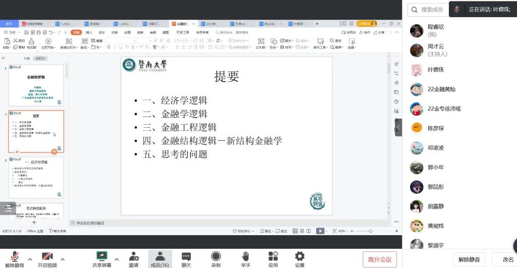 2023年3月11日上午,公司邀请暨南大学叶德珠教授进行了主题为“金融的逻辑”的线上学术讲座,讲座由副经理周才云教授主持,近百名PA视讯师生参与了本次学术讲座。