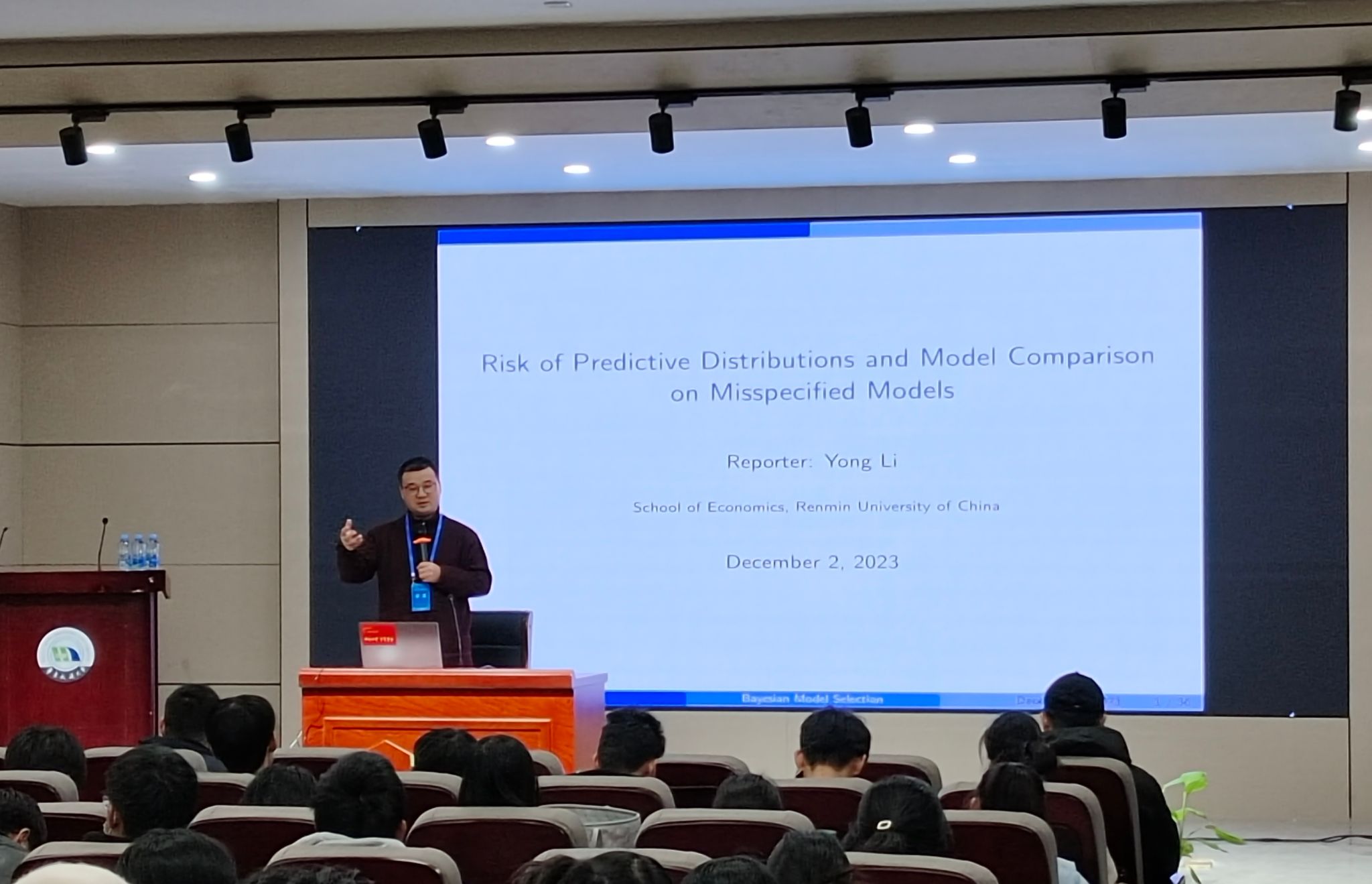 中国人民大学经济公司副经理李勇教授分享了主题为“Risk of Predictive Distributions and Model Comparison on Misspecified Models”的报告,从错误指定模型的ML理论文献综述、错误指定模型上预测分布的风险、贝叶斯预测信息准则、模拟研究和实际研究等方面,阐述如何在错误指定模型中找到更好的分布做预测,为使用计量方法进行投资提供了新思路。李勇教授在最后指出,近几年金融行业改革力度特别大,金融行业的岗位一定是往科技方向发展的,并建议金融专业的同学要学好数学和统计学,往交叉学科发展,提升自己的核心竞争力。