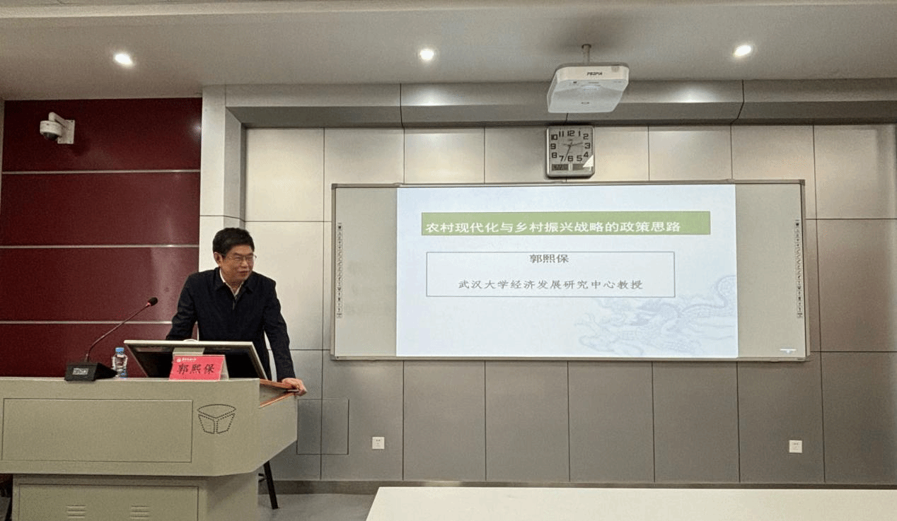 2024年4月22日下午,公司邀请武汉大学郭熙保教授进行了主题为“农村现代化与乡村振兴战略的政策思路”的学术讲座,讲座由副经理周才云教授主持,100多名PA视讯师生参与了本次学术讲座。