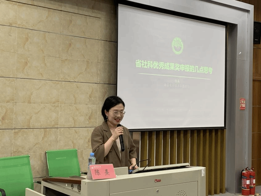会上,陈熹教授简要介绍了自身的科研经历,随后分享了成果奖申报的经验与注意事项。她表示,要做好前期的申报准备,并提出近年来开展的科普赛道竞争相对平和,建议有兴趣的老师可以去试着申报。随后,陈熹教授表示,要准备好申报表格和证明材料,例如成果内容提要和证明材料以及成果社会反响情况等,特别要注意做好匿名处理,以及申报材料的美观性。