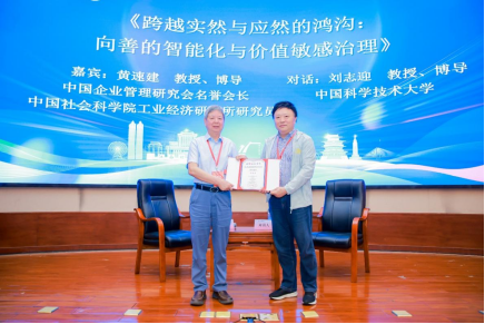 首先,中国企业管理研究会名誉会长、中国社会科公司工业经济研究所黄速建研究员以《跨越实然与应然的鸿沟:向善的智能化与价值敏感治理》为题,深入剖析智能化发展与价值治理的内在关系,系统阐述企业在智能化快速发展背景下,如何实现技术进步与价值导向的有机平衡。中国科学技术大学刘志迎教授与黄速建研究员展开对话,从多元视角解读这一前沿议题。