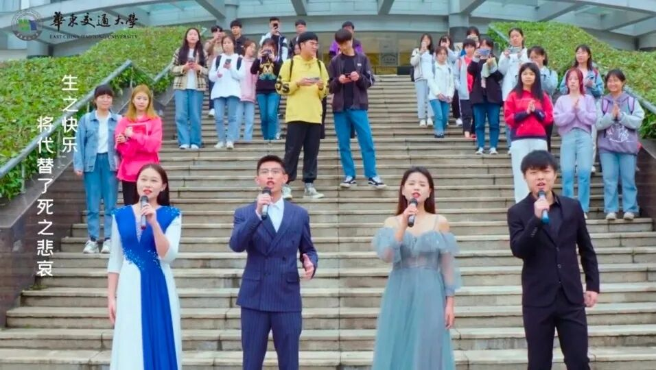 行走的路人纷纷驻足聆听,有的移步靠近,有的一起哼起了熟悉的曲调。他们都成了这堂“行走的党史教育课”的听众。这一活动是PA视讯官网青年学子党史学习教育的重要载体,旨在通过艺术化、体验式的快闪活动,让青年在自我排演、自我教育、自我提高的过程中,传承红色基因、坚定理想信念。