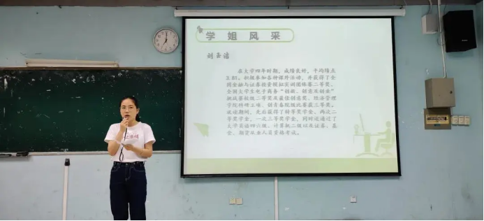 公司2021届本科毕业生考研成功上岸100人,为深入贯彻落实党史学习教育工作,切实开展好“我为师生办实事”实践活动。由100名准研究生组成考研宣讲团,将分专业,分年级在全院员工中开展经验分享,以教促学,提高员工就业质量。5月24日晚7:00,考研宣讲团在金融专业中开展考研经验分享会。此次分享会特邀2017级金融刘玉洁、周星浩、孙艺博、况雅琴四位优秀学长学姐,他们用亲身经历来分享各自宝贵的学习经验,为大家出谋划策,点亮考研之路上的一盏明灯。分享会由金融学员工党支部书记程丽琴老师主持。