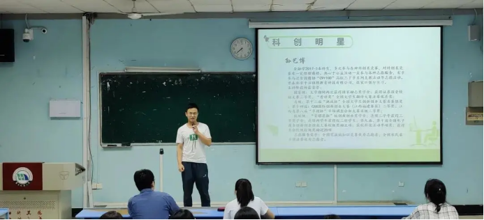 孙艺博学长分享本科阶段科创活动开展经验(2020年度创新创业奖学金获得者,挑战杯、互联网+、三创赛等赛事中颇有建树),他强调要熟练应用各种软件,多关注一些比赛信息,如我爱竞赛网,同时要积极和老师沟通,跟着老师的步骤参加比赛。