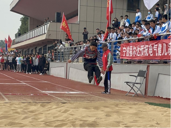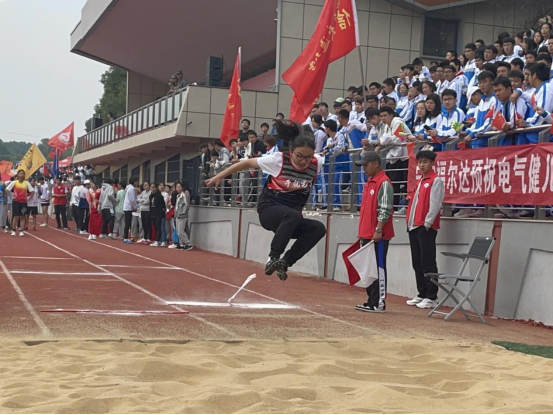 只见她们跳动活动双腿,抖肩放松全身,身体向前倾,待裁判员示意开始,她们便攥紧拳头奋力向前冲去,双眼目视前方,待快到踏板时及时调整自己的节奏,双腿用力一蹬,上身前倾,绷紧核心,纵身一跃,只见一道完美的弧线,踏进沙坑。她们一次又一次的跳跃都在突破自己,都在证明自己为这来之不易的成绩所做的努力。全场的观众都为她们欢呼,嘹亮的掌声此刻只属于她们。有力的助跑,完美的跳跃,运动场上的她们是胜利的标志,是青春的赞叹,是努力的证明,她们优异的成绩不负大家的支持和鼓励,也不负自己刻苦努力的训练和汗水。