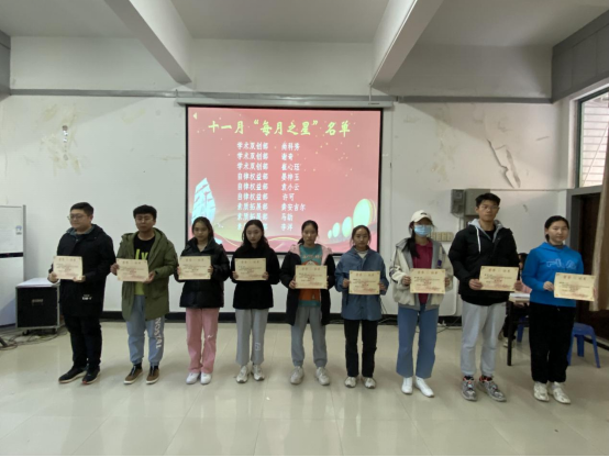 会议伊始,综合办公室负责人张紫一宣读了部门考核细则,强调了每月小结的注意事项,总结了在本月工作中出现的问题,并汇报了各部门考核结果。经过综合办公室多方面考核,结合各部门的工作成果以及工作人员的综合表现,最终评选出“每月之星”,分别为学术双创部尚科秀、学术双创部谢奇、学术双创部崔心珏、自律权益部晏梓玉、自律权益部袁小云、自律权益部许可、素质拓展部龚安吉尔、素质拓展部马劫、素质拓展部李洋。随后,员工会执行主席刘冉宣读《关于表彰PA视讯十一月“每月之星”的决定》,并由员工会主席张紫一、龚钰洁为“每月之星”获得者进行颁奖。最后,龚安吉尔作为“每月之星”代表发言,她对获奖同学表示祝贺,并保证大家在下一阶段会继续踏实努力工作,更好服务同学。