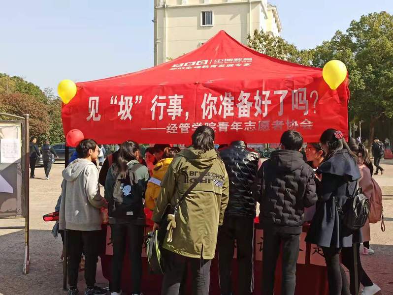 本次活动吸引了小花椒们的广泛参与,在院青年志愿者协会的组织下,大家有次序进行答题。整体题目设置,除了丰富多彩的垃圾分类知识题目,更有生动有趣的垃圾分类图片解析,让同学们学习垃圾分类知识更加轻松。为增强大家的责任感与使命感,青年志愿者协会在摆摊点拉起了横幅,组织答题同学在横幅上签下自己的名字,倡导大家做好垃圾分类工作。每位同学在答题过程中都学到了许多垃圾分类知识,“垃圾分类”引起了全院同学的广泛关注。