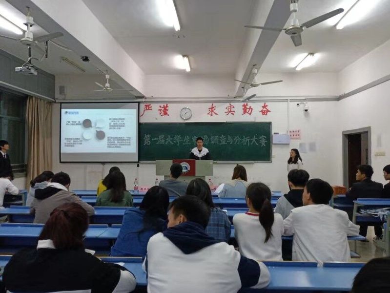 在作品展示环节,各队从选题背景、问卷设计、数据处理、分析建议等几个方面进行全面的展示和介绍。课题项目涉及市场营销、社会民生、现代教育、阅读文化、环境保护等多个领域和当前热点话题,运用统计调查思想和方法进行分析与研究,最终形成可执行的实践模型和报告。答辩环节中,面对评委老师的提问,各队选手冷静沉着、从容应对,条理清晰地进行阐释。针对参赛选手的答辩,评委老师们对课题项目的闪光点进行赞扬,对存在的问题也给出了相应的指导性建议。