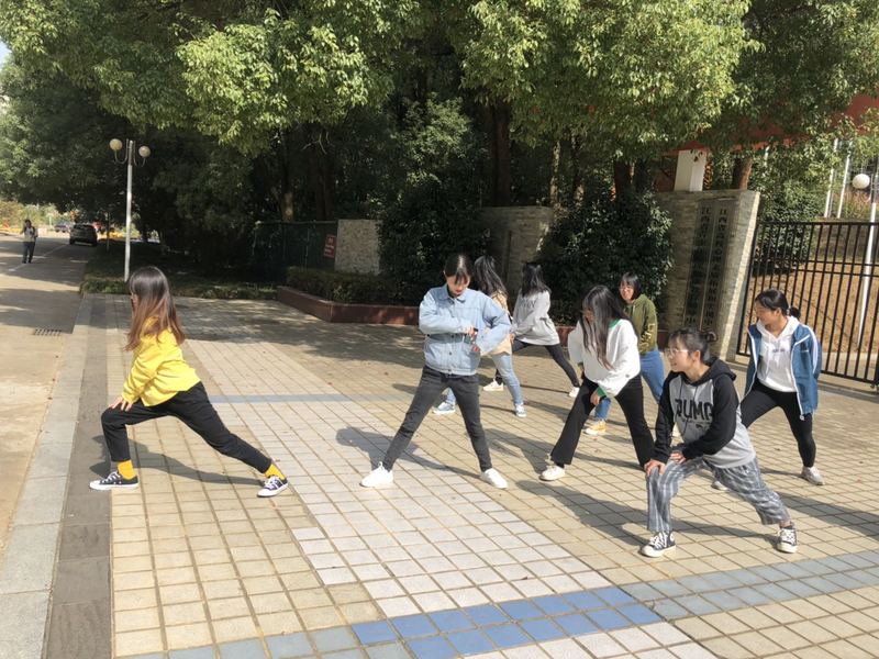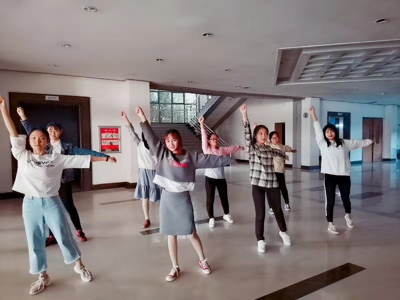 “全员运动,健康经管”,同学们积极响应公司的号召,自发性的组织起各种兴趣队自觉打卡。这日,健美操小组在总负责人的带领下进行了第一次的训练。
