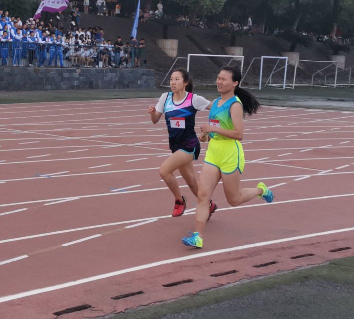 赛前,运动员们都在为即将进行的比赛做热身,不难看出运动员们的紧张与激动,但只要站上这砖红色的跑道上,她们还是以最认真的态度对待比赛,以最饱满的激情奔跑着。那一声枪响,运动员们如箭一般飞出,她们在这里用速度展现她们的英姿飒爽。一圈的奋力奔跑,她们不断变速,不断调整呼吸,不断地超越对手。最后,她们在经管观众的呐喊声中奋力冲刺,在口号声中奔向终点,奔向胜利。