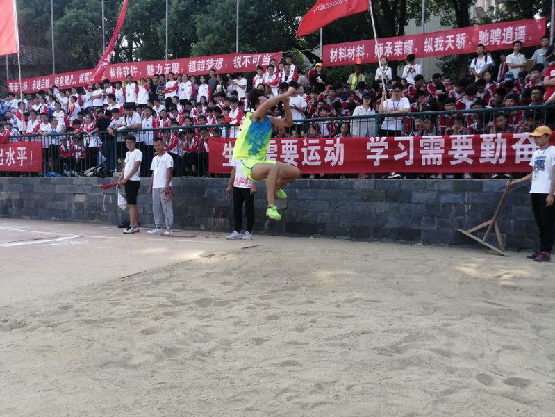 沙地里,运动健儿们离弦箭似的助跑、蛟龙似的起跳、猛虎似的空中跳跃、无可挑剔的落地,在空中划出了一条完美的弧线,引起阵阵惊叹。在触碰到沙地的瞬间,运动员们都创下了不凡的成绩。