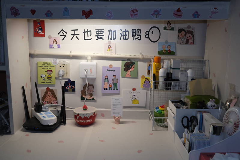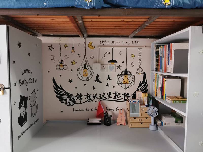 墙壁上贴着的帆船满载着同学们远航的梦想,桌上粘满的励志标语是同学们牢记心头的座右铭,床前插着的小国旗更是同学们对祖国繁荣昌盛最真心的祝愿。有国才有家,宿舍就是一个小家的缩影,给每一个远在他乡的游子一个最温暖的避风港,给离家万里的学子遮风挡雨,给每一个来到花椒的萌新们带来友情和温暖。