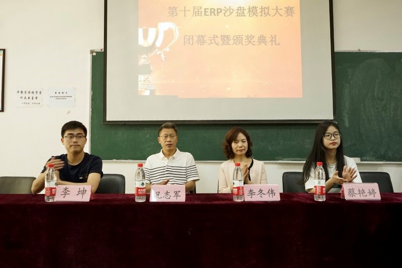 5月12日上午,第十届ERP沙盘模拟大赛闭幕式暨颁奖典礼在31栋124顺利召开。公司副经理李冬伟、协会指导教师、副教授蒋翠珍、协会指导教师况志军、第九届协会会长李坤、第十届协会会长蔡艳婷出席此次典礼。