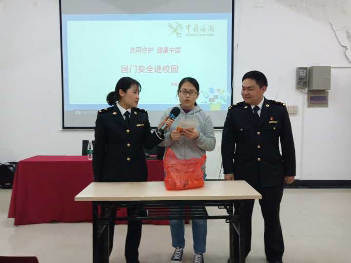 针对上述两个方面,翟女士为我们带来了满满的干货——《中华人民共和国禁止携带,邮寄进境的动植物及其产品名录》,详细向我们介绍了禁止入境物品的种类,并且通过现场问答、游戏等互动形式,让同学们参与进来,增强同学们的国门生物安全意识,以实践的方式使同学们加强对国门生物安全知识的学习,同学们踊跃参与其中,现场气氛热烈,相信通过此次学习,同学们都能对国门生物安全知识有足够的了解。