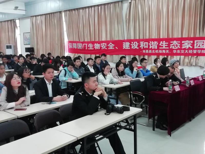 在全民国家安全教育日即将到来之际,4月11日下午2点公司与南昌昌北机场海关联合开展的“国门安全进校园”主题的综治安全宣传讲座在教31栋104顺利进行。此次宣讲活动非常荣幸能邀请到江望锦副关长、简丹科长、王琦、翟燕专业人士为我们普及国门生物安全知识。公司党委副书记田玉兰、学工办副主任兼团委副书记程丽琴参加了此次会议。南昌昌北机场海关部门的工作人员引导我们了解较为“冷门”的国门生物安全知识,介绍了检验检疫法律法规以及外来有害生物的种类、入侵方式、危害及防范措施等知识,令同学们受益匪浅。