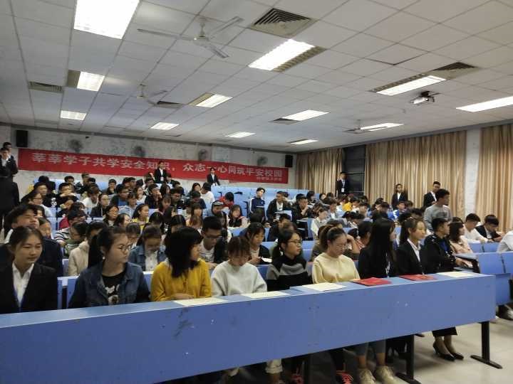 会议进行到下一个阶段,为增强2018级新生安全意识,提高自我保护能力,创建平安校园,员工会副主席谢洪亮给大家进行安全知识讲座。他分别从消法安全、电信诈骗、兼职安全、小偷偷盗等五个方面列举实例并分析,给与同学们警示与建议。接下来,由校保卫处老师蒋瑨进行安全总结,蒋瑨特地就防范色狼、偷拿外卖等问题进行详细说明并对同学们提出衷心告诫。他表示保卫部会尽全力保护同学们的权益,希望同学们积极配合,提高警惕意识,用实际行动真正做到遵纪守法,做一个安全意识高的老员工。