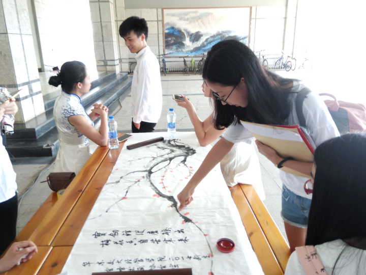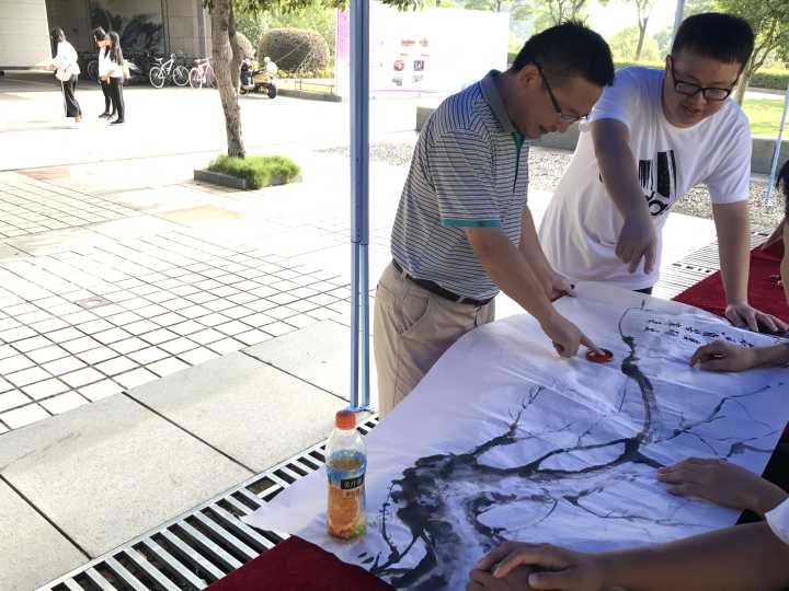 来自全国各地的新生相聚交大,接过你们的行囊,我们就是一家人。中国风的梅花枝干姿态苍古而清秀,引来新生驻足。会计专业新生程同学表示:“一朵朵梅花自苦寒磨砺中来,向高远未来中去。像我们,十年寒窗苦读,今日开放在天地之间。百尺竿头,为明天绚烂绽放而奋斗。”