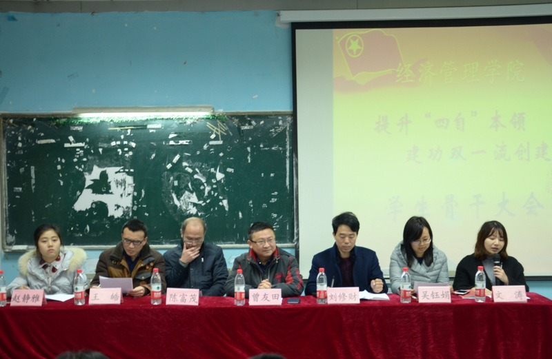 曾友田表示,应当动员和部署“提升‘四自'本领,建功双一流建设”,为建设一流专业而努力。他强调:“首先应该激发工作活力,其次提高工作效率才能见微知著、解决问题。”最后,曾友田对经管学子表示期望:在新的一年能够拥有新的境界获得新的提高。