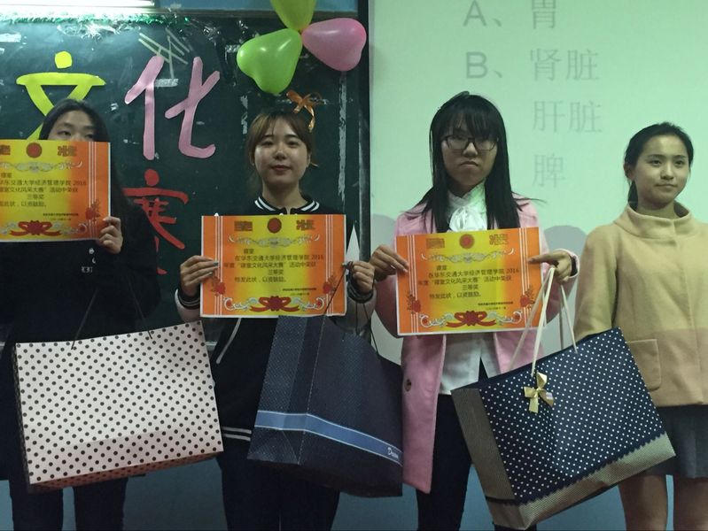 活动的第一环节由“我的寝饰我做主”寝室设计大赛的决赛入围寝室进行PPT展示与讲解。第二环节由各寝室表演节目,由评委现场打分并结合初赛成绩和同学投票成绩按一定比例算出各寝室的最终得分。其中,44栋二单元507荣获一等奖,45栋一单元104及45栋一单元408获得二等奖,45栋一单元121、45栋二单元110及四十五栋二单元317获得三等奖。会计一班和金融三班获得最佳组织奖。