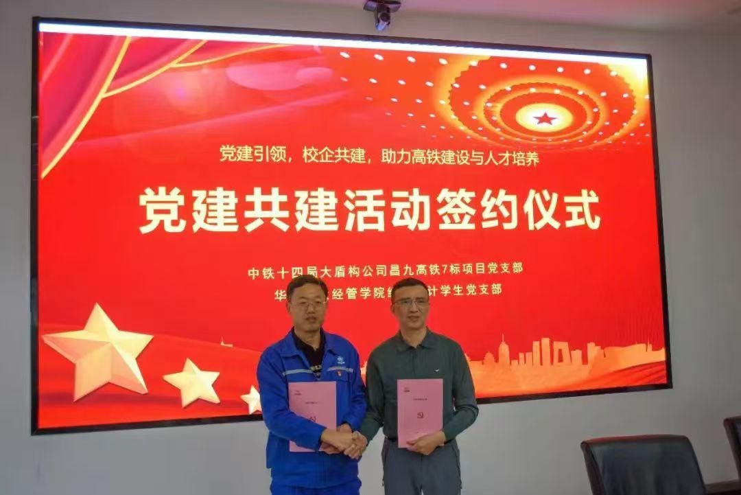 在党建座谈会上,昌九高铁七标的黄春水书记介绍了支部情况,并播放了企业宣传片,随后,公司冒小栋副经理和王显涛书记分别对PA视讯官网经济员工党支部和红旗班的情况进行了介绍。双方领导及党建工作负责人在会上深入交流党建工作经验与成果,围绕校企党建工作契合点展开了深入探讨,有力地促进了思想碰撞与交流,进一步夯实了校企合作基础。双方还共同签署了《党建共建协议书》,明确了共建的具体目标和方向。