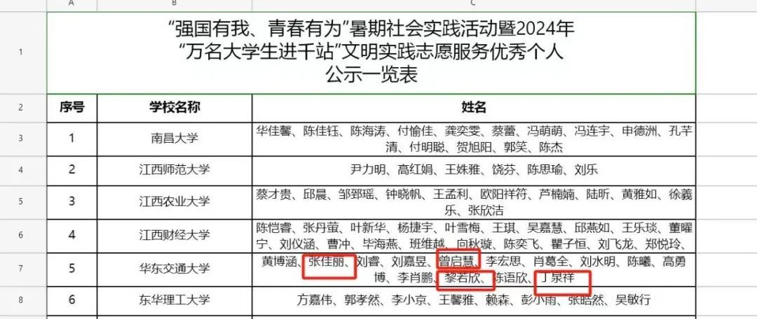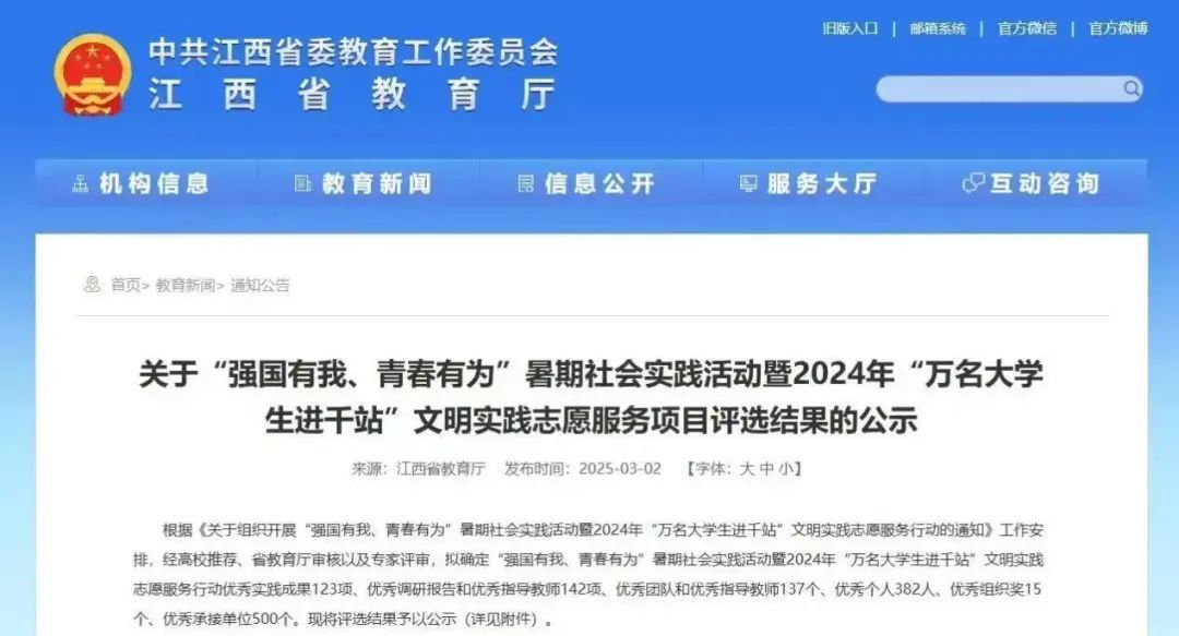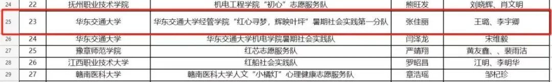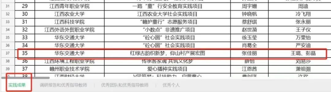 近日,江西省教育厅公示关于“强国有我、青春有为”暑期社会实践活动暨2024年“万名老员工进千站”文明实践志愿服务行动评审结果,公司喜获佳绩。其中斩获优秀实践成果一项、优秀调研报告和优秀指导老师特等奖两项、优秀团队和优秀指导老师两项。在彭晶、王璐、李宇卿等多位指导老师的带领下,“红心寻梦,辉映叶坪”暑期实践队的队员们,认真完成暑期实践任务,其中张佳丽、曾启慧、黎若欣、丁泉祥四位同学表现突出,荣获优秀个人荣誉称号。