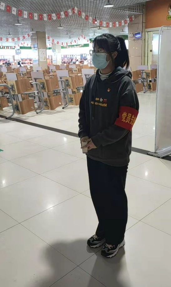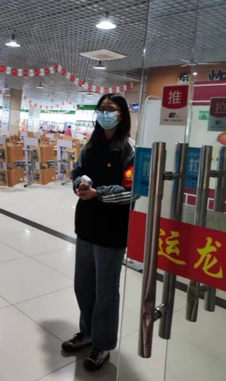刘可欣,中共党员。疫情突来时立刻响应公司的号召,参加党员先锋队,主要负责北区公共场所的防疫服务。浴室、食堂、图书馆都有她的身影,维护秩序、测量体温、善意提醒同学保持一米间距,确保人员不密集。能作为一名志愿者并贡献自己的一份力量,她认为,这是新时代老员工的使命与责任。