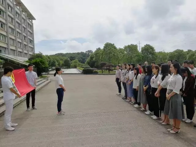 吴钰娟老师通过致辞说明我们这次在这里进行重温宣誓仪式的意义,并对毕业班党员们提出殷切的希望和要求。毕业季之际,毕业生党员要进一步坚定爱党、爱国的理想信念,牢记党的历史使命,做有担当的社会主义青年,在今后的工作、学习和生活中,要依照入党誓词的要求在思想上和行动上与党保持高度一致,继续发扬党的优良传统,始终以党员的先进性鞭策激励自己,以更加高昂的精神践行好对党的庄严承诺,积极为社会贡献自己的一份力量,争做模范先锋。