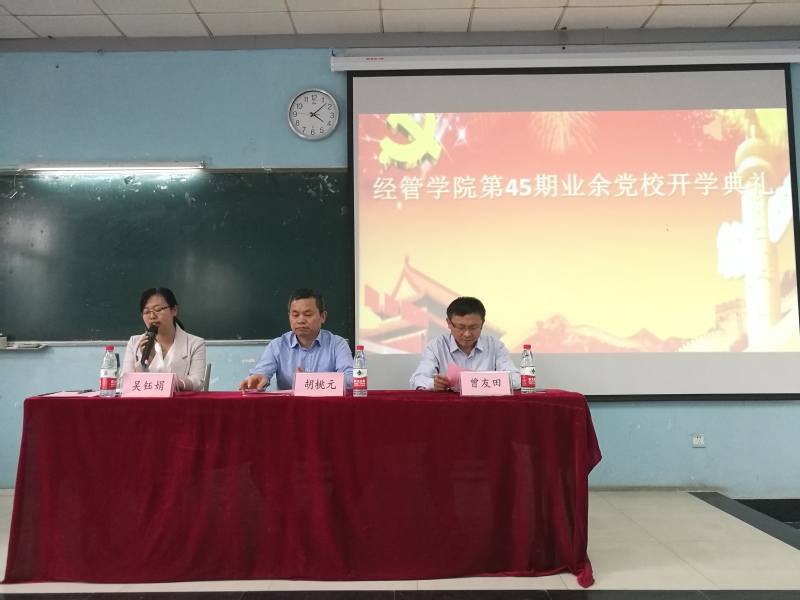 2018年4月26日,PA视讯第45期业余党校正式开班,并在31#220教室举行了开班典礼。党校董事长曾友田,公司党委书记胡桃元,员工党员及第45期党校培训学员到场参会。此次开班仪式由吴钰娟老师主持。