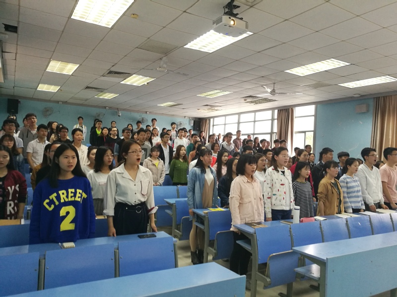 全体与会成员起立奏唱国歌。激昂的国歌令人心潮澎湃,作为中国人,国歌是我们共同的财富,我们口中唱出的是心中对党和国家的满腔热情。