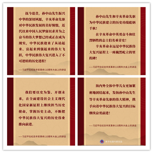 习近平在纪念辛亥革命110周年大会上的讲话金句。