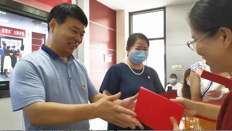 万明书记一同为六位老党员同志庆祝政治生日,为新党员佩戴党徽,重温入党誓词。