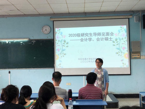 夏去秋来、微风捎来丝丝凉爽,盼望着、憧憬着,开学日终于来临。在迎新工作紧锣密鼓推进的同时,为加强新生对导师研究方向的了解及推进后续导师双选工作的开展,公司2020级会计硕士导师见面会于2020年9月15日下午在31教-213教室成功举行。出席见面会的导师有:王芸教授、周才云教授、李雄飞副教授、聂倩副教授、刘杨晖博士。会议由王芸教授主持。