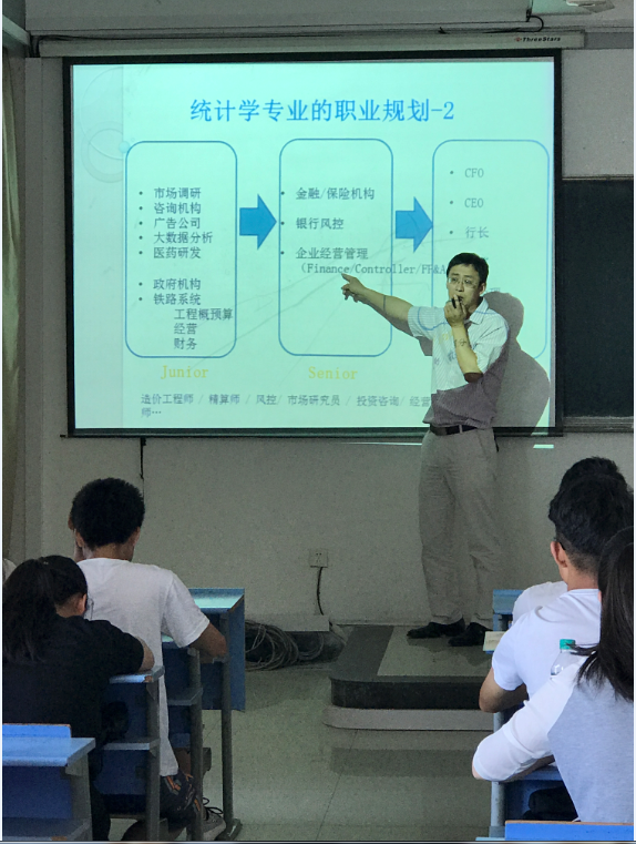 2017年5月13日,95级统计学高慧斌员工回公司做了题为:“经济统计学”专业员工的职业发展规划的讲座。高慧斌员工结合自身及统计专业其他同学职业发展,就统计学毕业生的就业岗位有哪些、统计学员工职业发展规划有哪些、哪些是必须具备的素质和技能等方面谈了自己的认识,对统计学在校生如何度过大学美好的阶段提出了忠告和建议,最后和师弟师妹们进行了互动。