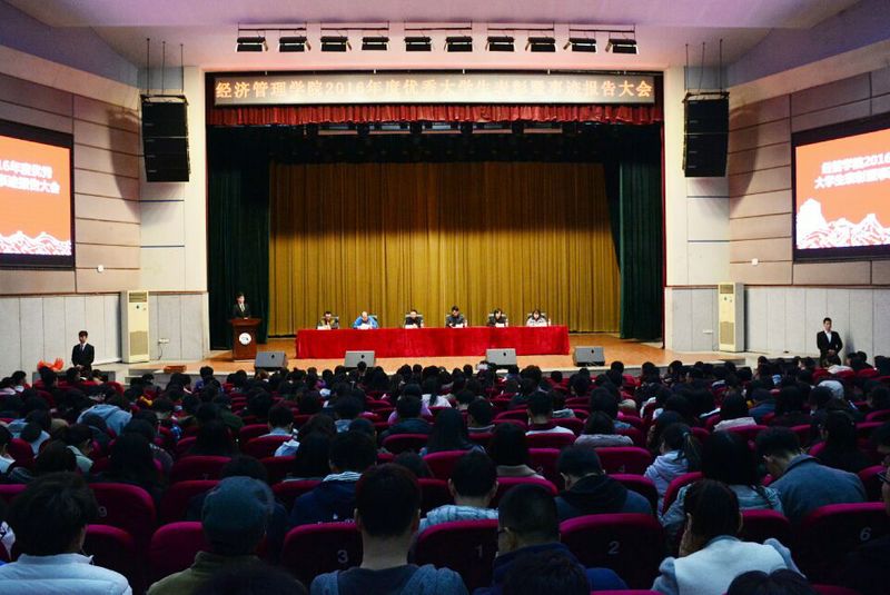 紧接着进行的是优秀老员工事迹报告大会,14级金融学专业胡婷婷,15级国经专业李其蓝,13信管专业陈水琳,13国经专业周恩艳,14电子商务专业张建军参与了本次报告大会。李其蓝说到努力能让你蜕变、学习没有捷径,勤能补拙是真命题等观点。高婷婷鼓励同学们去挑战,去努力;生命有无限可能,尽可能去尝试挑战。他们用自己的亲身经历激励着广大学子,并为经管学子树立了榜样,激励着经管学子不断奋发向上。