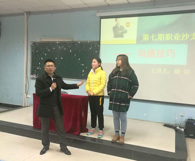 12月8日,由经管团委就业发展中心主办的主题为“沟通技巧”的职业沙龙于31栋召开。亚洲销售王子、总裁演讲与口才培训导师晓印担任主讲人,PA视讯学工办主任刘修才以及全体16级新生班委参与此次职业沙龙。