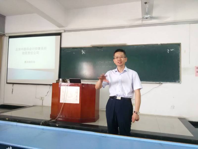 课堂上,戴其林向同学们讲述个人工作经验,分析会计事务所工作情况。戴其林说明合伙人制度和扁平化管理的意义,并一再强调会计专业知识与专业技能的重要性,最后从公司发展情况、职业生涯规划等方面详细介绍北京中路华会计事务所有限责任公司。