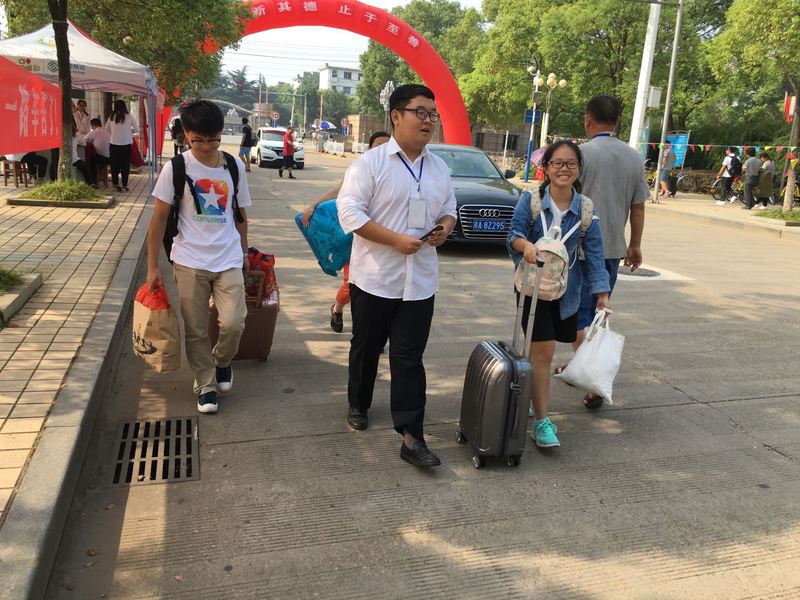 来来回回的接送工作也并没有使志愿者们懈怠于自己的工作,他们热心的欢迎每一位新生的到来,帮家长员工们搬运行李,让刚踏入大公司园的新生们感受到了不一样的温暖。今天迎新最大的亮点就是成立的党员服务制,党员代表们志愿加入迎新队伍,服务于新生。公司党委副书记曾友田,PA视讯学工办主任刘修财亲临迎新现场并和新生进行了亲切的交流。