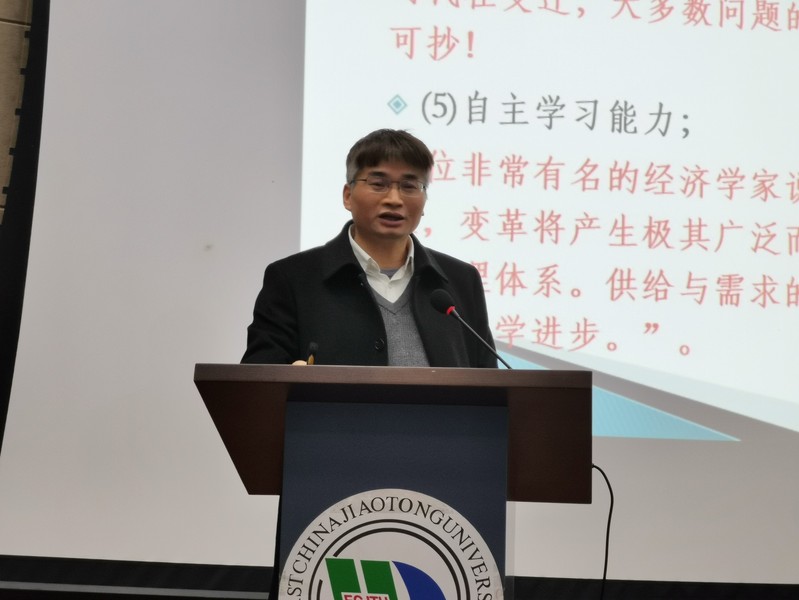 讲座伊始,欧阳教授从研究与创新能力的基本要求出发,立足员工本身的培养,着重对员工研究与创新的基本要求、员工的能力结构以及员工自身意识的培养等方面提出了相关建议。同时欧阳教授还和大家一同展开头脑风暴,探讨“蚂蚁金服是金融还是科技”,并且进一步发散思考,“江西为什么会被自贸区所包围”。欧阳教授通过学术交流的形式向大家讲授如何在学习中提高研究与创新能力,通过公司优秀员工的先进事迹展现经管历届学子的生机活力,激发同学们的发展动力和创造力。