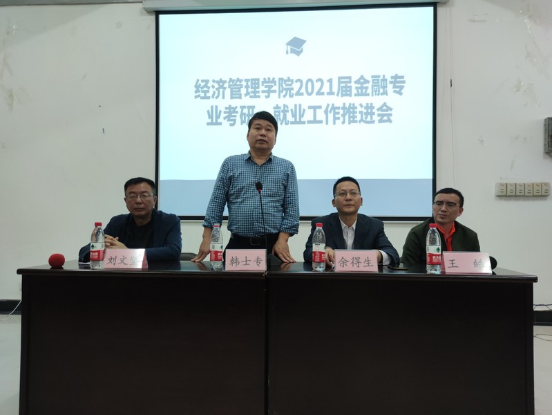 紧接着,韩士专经理点明了在金融专业就业形势严峻现状的背景下展开此次会议的重要性。他切实为员工将来发展考虑,强调不要因为考研而放弃就业的道路,要考研就业两手抓,把握眼前机遇,创造未来更好的人生。随后,他介绍了金融专业优秀的教师团队,分享他们在科研路上的累累硕果,展现公司培育高端人才的决心和信心。会议最后,公司党委副书记刘文坚动员17级金融专业全体员工积极准备就业考研,珍惜大学时光,以梦为马,不负韶华。