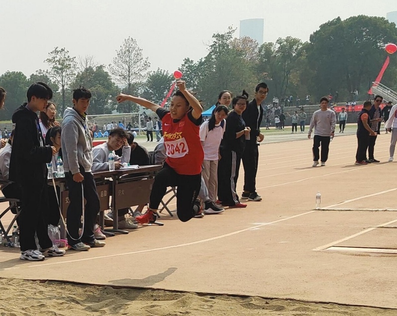 伴随着自己的节奏,韦柳林熟练地助跑、跨步、起跳。连贯的动作,在沙地上方划出了一道优美的弧线,在她跃起的那一刻如同一只展翅高飞的雄鹰,在空中有力地飞跃前进,落地的那一刻,她的成绩引起了场边观众们阵阵热烈的掌声。沙地里的痕迹,即是优异的成绩,也是青春的烙印,更是荣誉的象征!