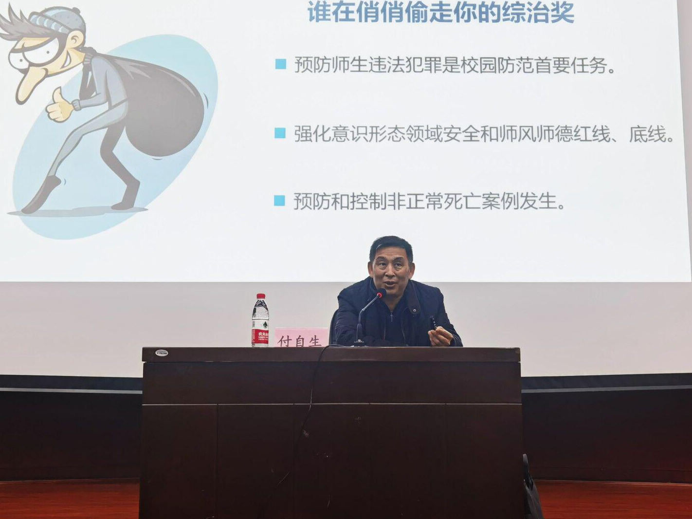为了强化校园防范,全面提升平安校园的建设能力,公司特邀PA视讯官网保卫处处长、武装部部长、综治办主任付自生老师于3月18日下午四点三十分在北区圆形报告厅开展以“综治安全”为主题的志刚讲坛。
