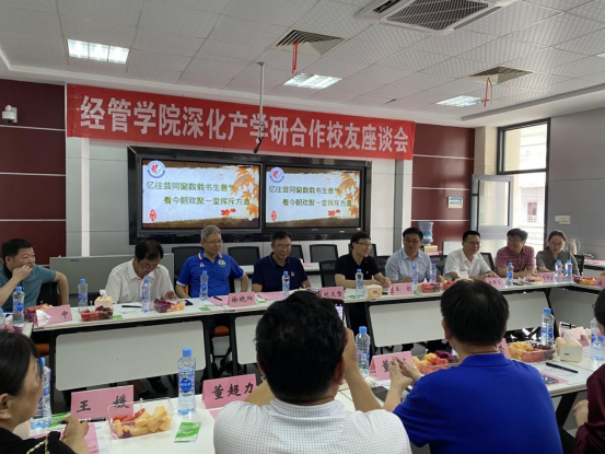 座谈会上,公司87级会计学专业毕业生、舜德艺术文化发展有限公司董事长陈格喜,88级财务会计专业毕业生、武桥重工集团股份有限公司副总经理简靖锋,89级会计学毕业生、武汉建设投资有限公司财务负责人董燚,92级会计专业毕业生、中铁三局投资公司总经理龚小华,95级涉外会计专业毕业生、江西省员工经济产业园区运营管理有限公司执行董事欧阳雷雨等员工,结合自己工作经验体会,围绕公司学科和专业建设、人才培养模式改革、教学科研实训基地建设、深入开展校企合作等内容,进行了交流探讨,积极建言献策。公司领导、老师和员工们现场进行了深入的互动交流,大家畅所欲言,共叙师生恩情、共谋未来发展。