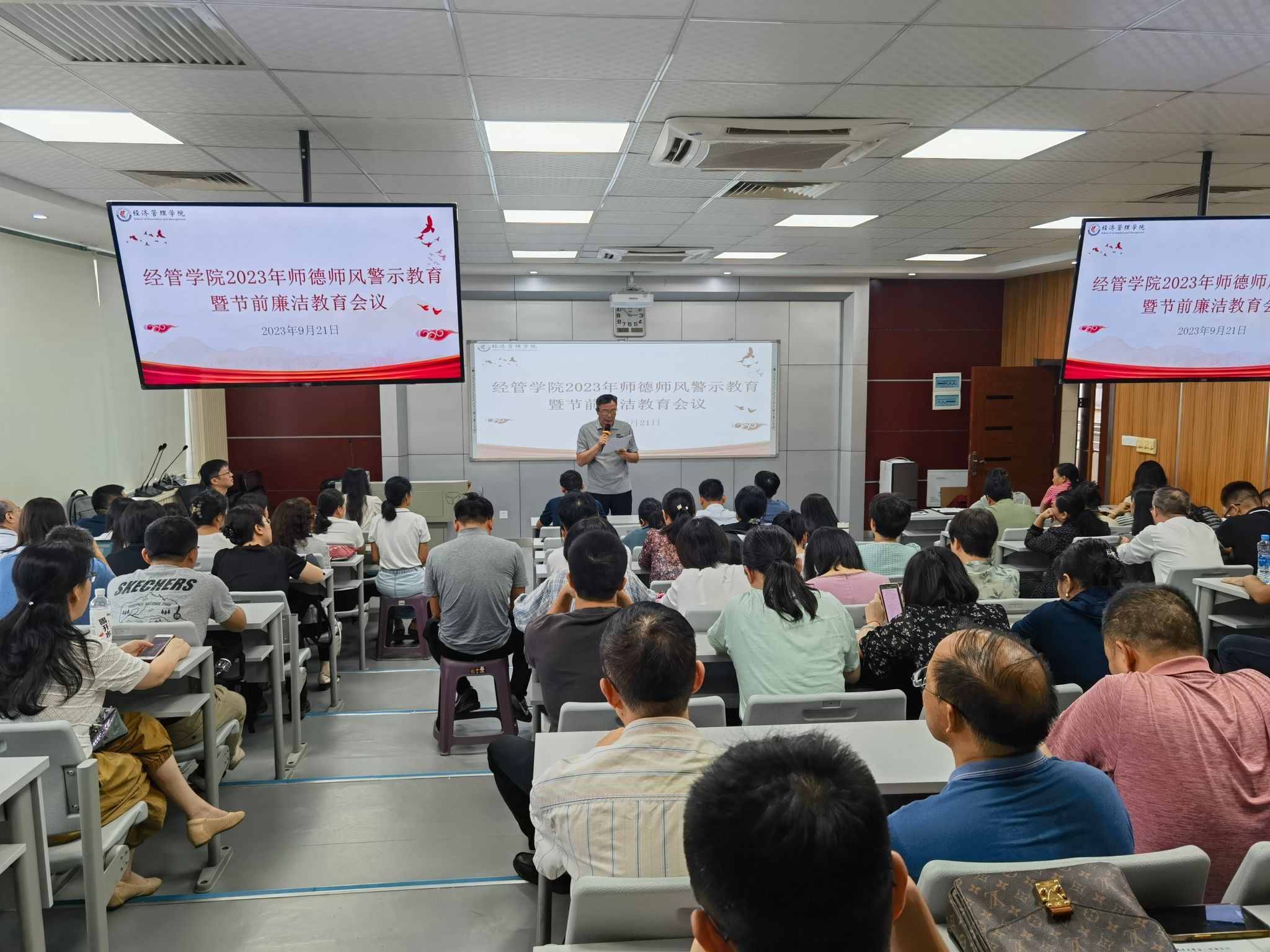 PA视讯2023年师德师风警示教育暨节前廉洁教育会议现场。